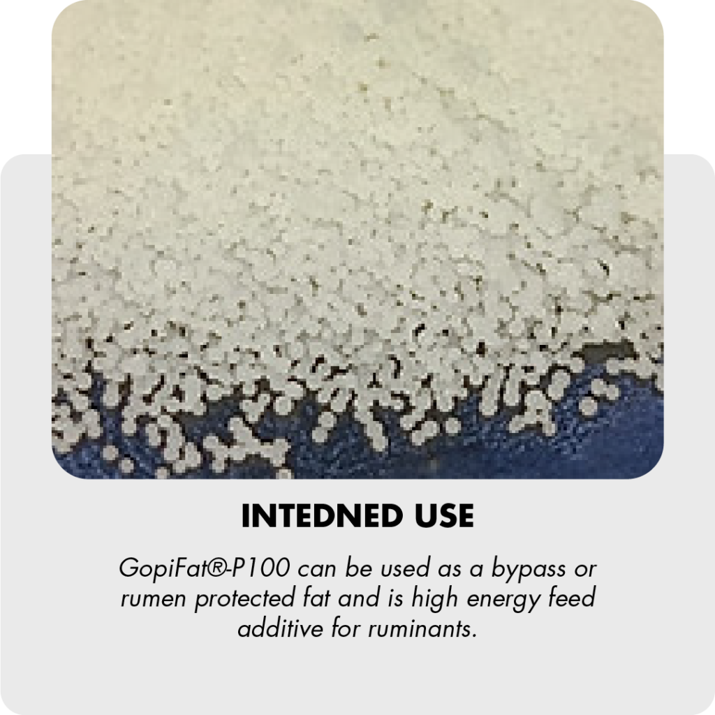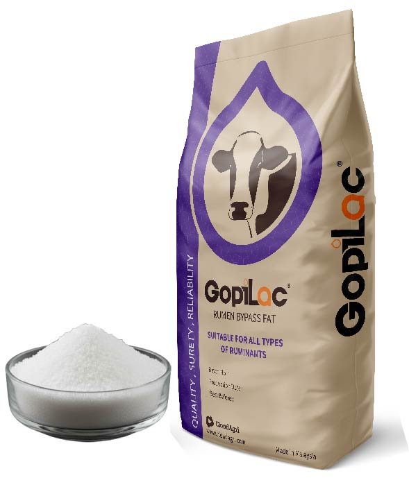 GopiLac® is the 1st generation bypass fat with the combination of palm fatty acids and calcium. It is regarded as undisputed 1st choice of dairy farmers world wide. The calcium mixture helps to protect the breakdown of fatty acids into rumen.